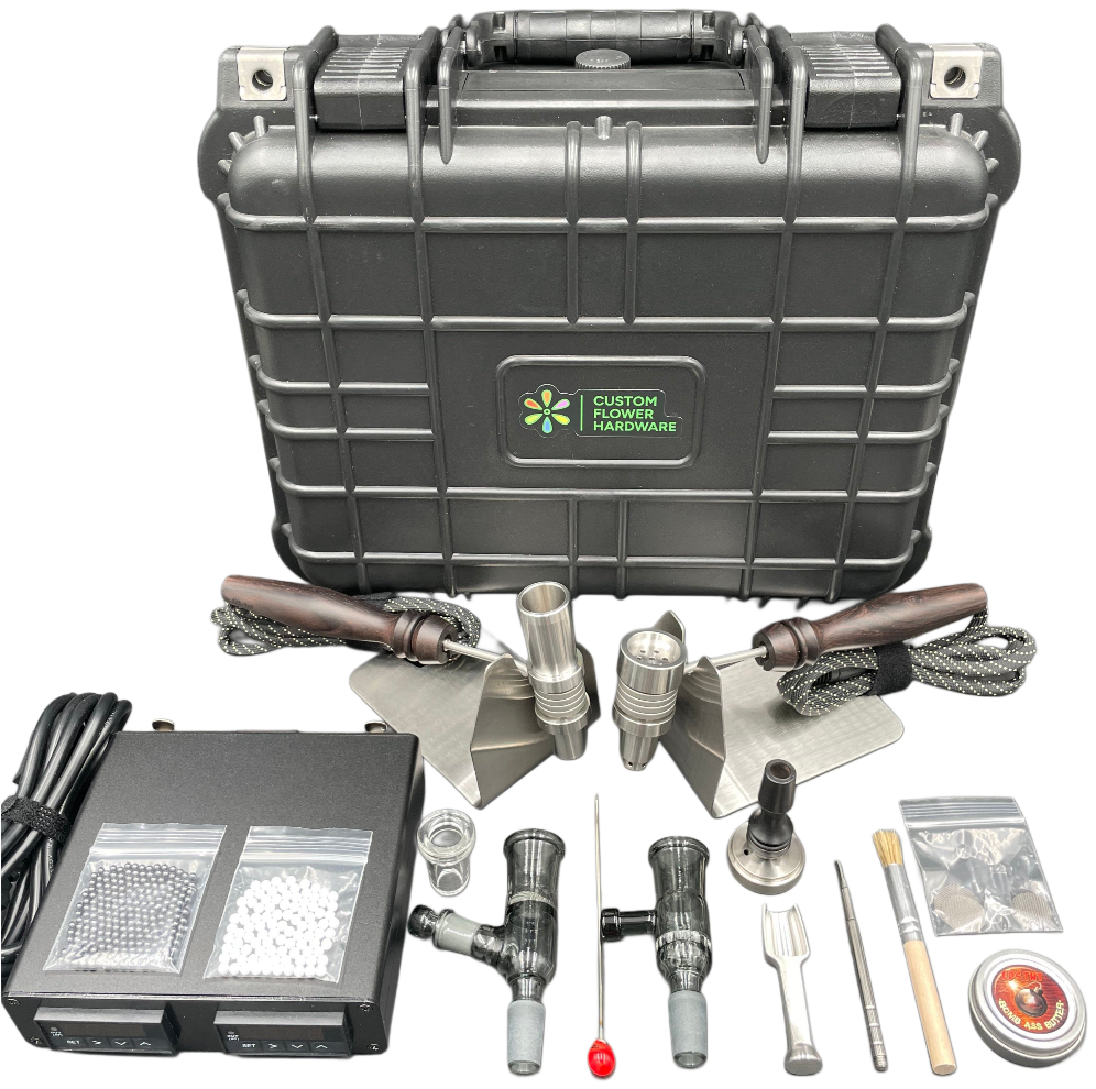 Like with any exposed/covered coil system there are risks of burning and fire. Do not leave unattended and pay special care handling equipment. People with long hair should keep it pulled back while using the equipment and care should be taken wearing loose/baggy clothing. Obviously keep away from pets and children. Common sense goes a long way here. If you are clumsy, prone to getting burned or just not confident handling high powered, high temperature equipment, this is NOT for you. Holler at us at sales@vgoodiez.com and we can help figure out something more your speed.