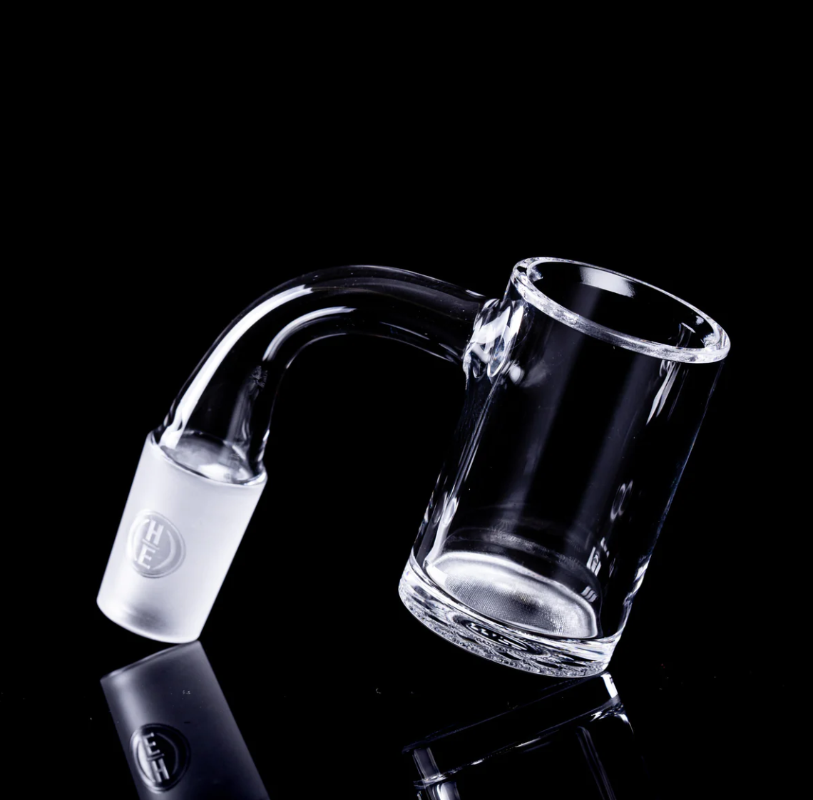 The Gavel SE features the new Surface Enhanced quartz floor. The surface is engineered to substantially improve the efficiency of the oil vaporization process by increasing surface free energy, decreasing liquid surface tension, promoting nucleate boiling and rapidly increasing evaporation rates. The enhancements were designed to be both extremely durable and easy to clean. While we recommend iso for cleaning any nail; maintenance can be managed with dry cotton swabs. This is different from the opaque which required iso alcohol maintenance to avoid black carbon spots. The bottom is engraved and that engrave becomes visible through the top of the bucket when the surface is wet. When the floor is dry, the engrave is again hidden by the opacity of refracting light.