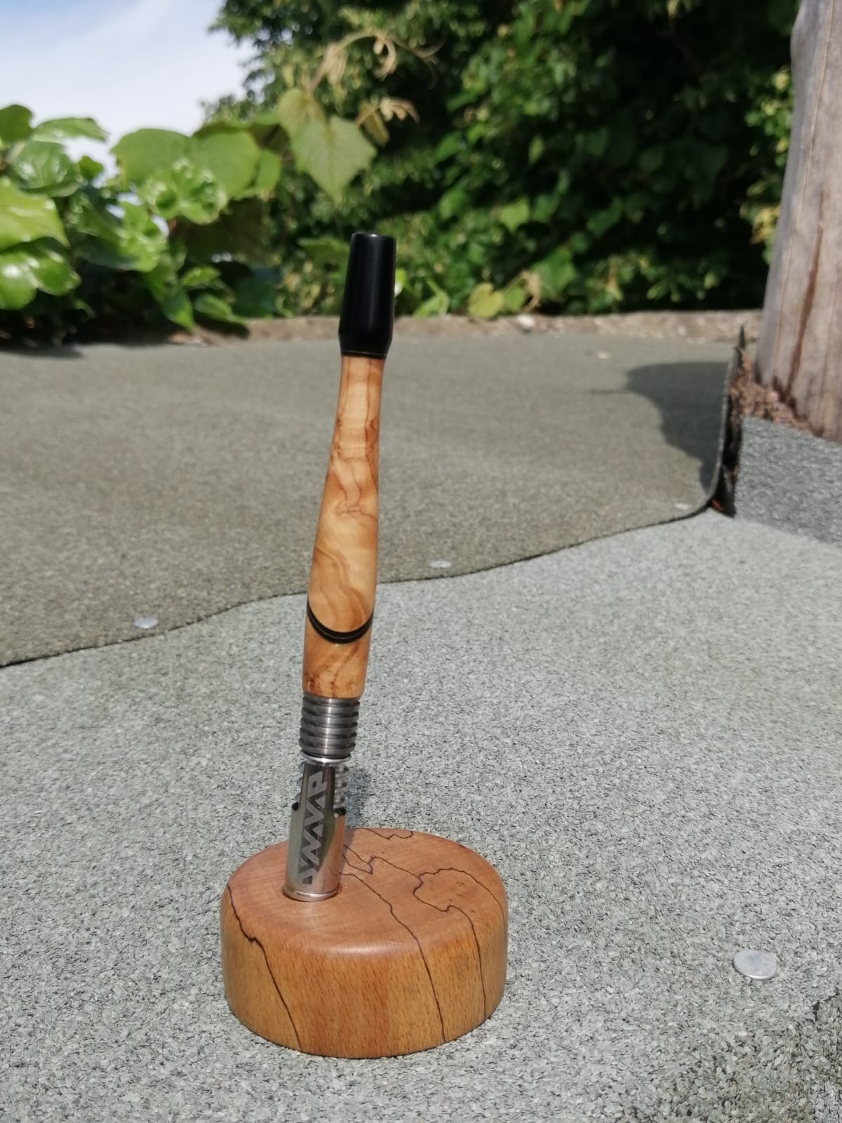 Olivewood with Black accents, 10mm mouthpiece. Grade 2 titanium hot end insert with 316 stainless steel liner
