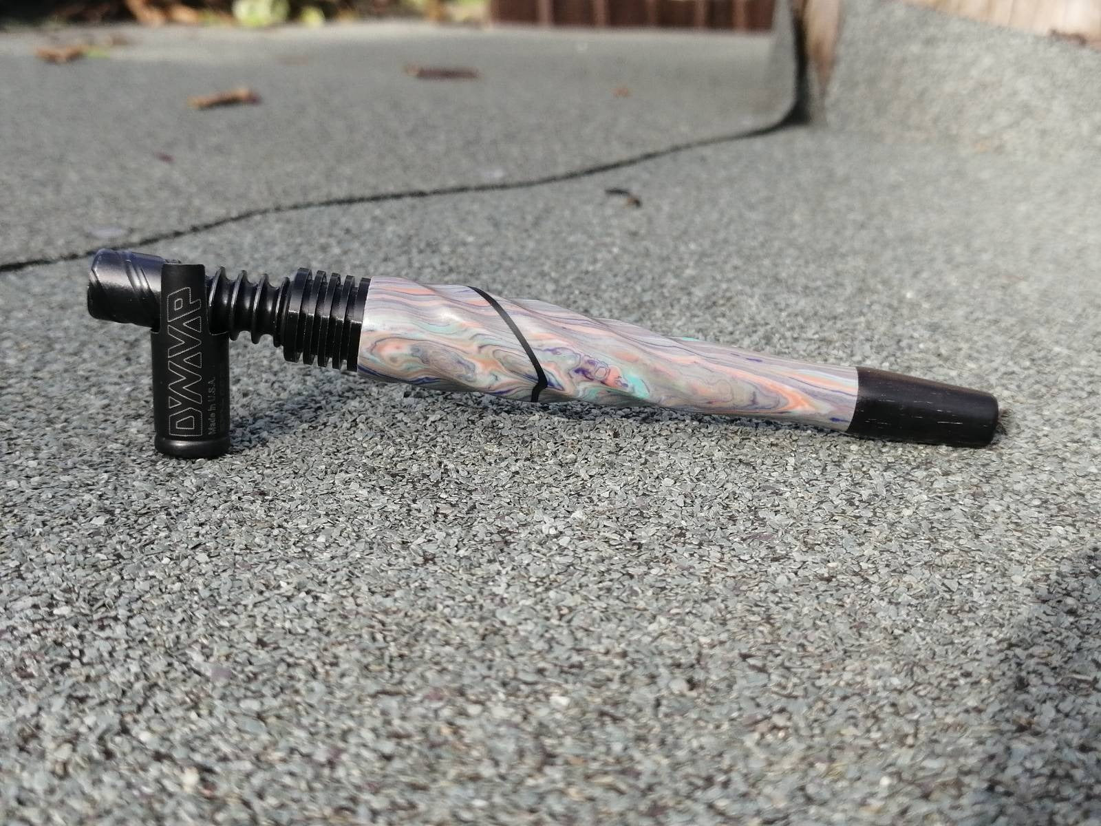 Home/Artisan Gallery/Tru Stone Twist Acrylic Black Finned w/African Blackwood Mouthpiece by PhattPiggie